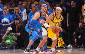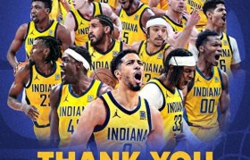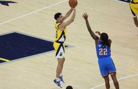 准,步行者谢泼德在总决赛G6第3节末命中压哨3分球后领先雷霆30分