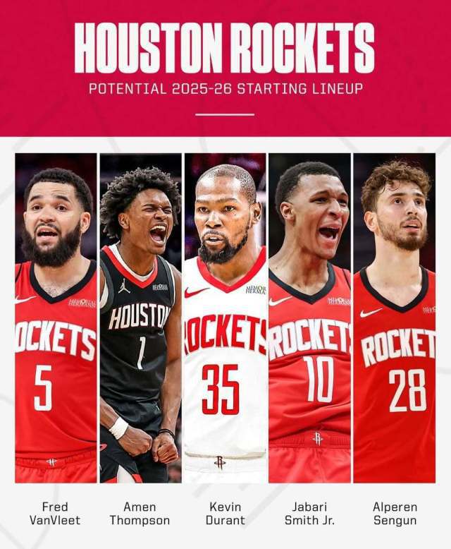 当然,杜兰特也有隐患,他的年龄和伤病问题。2024-25赛季,他因伤缺席了20场比赛,新赛季,KD又老了一岁,他会不会遭遇更严重的伤病困扰,这将影响火箭的未来。