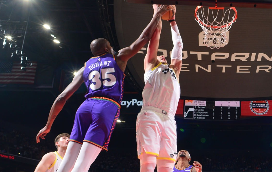 尽管杜兰特已不再像巅峰时期那样是独一无二的得分手(他曾九次打出比联盟平均水平高出至少15%的真实命中率),但他在自主创造进攻机会方面仍几乎不逊色于任何人。在上赛季出场时间至少500分钟、使用率至少28%的球员中,只有掘金队的三届MVP约基奇的真实命中率(64.2%)超过了杜兰特。