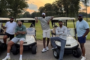 体育资讯7月4日讯 今日,湖人前锋詹姆斯更新Instagram Story,转发他近日在家乡阿克伦与儿时好友、高中队友一同打高尔夫的合影。