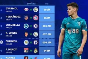 开云体育下载-足坛左后卫转会费榜:格瓦迪奥尔8000万欧居首,科尔克兹第七