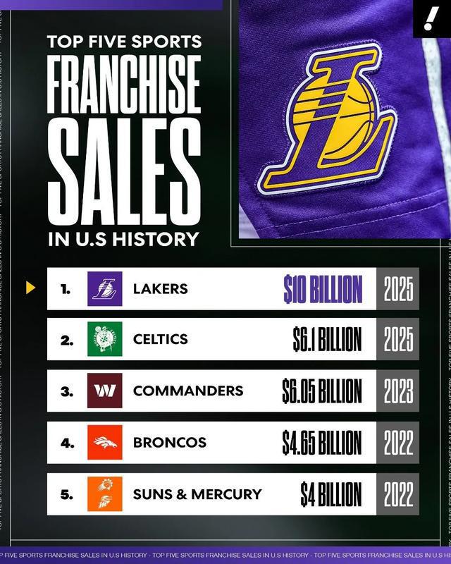 有意思的是湖人和凯尔特人这对宿敌,在卖球队这件事上也要较劲。去年夺冠之后的凯尔特人逢高出手,卖了61亿美元创造了当时的体育史交易纪录。马上湖人就用100亿美元大幅度刷新了原有纪录,那可是100亿啊。